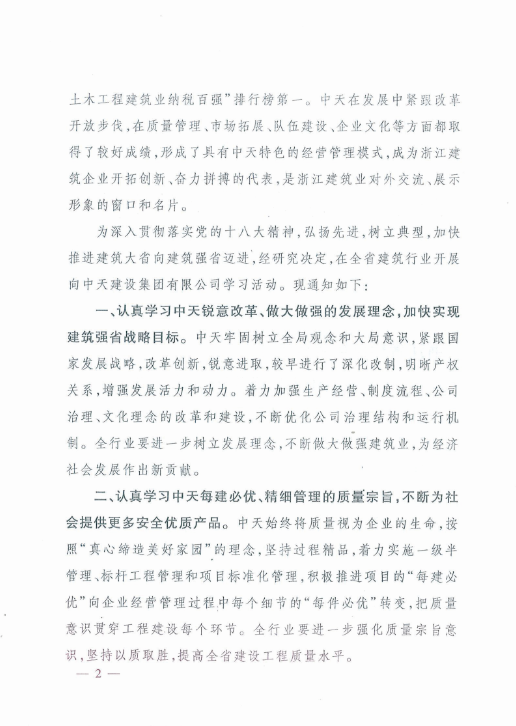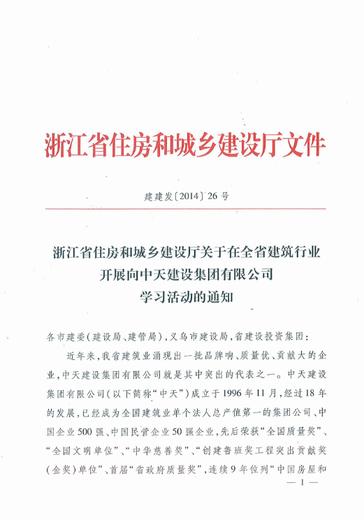 《浙江省住房和城乡建设厅关于在全省建筑行业开展向必威betway建设集团有限公司学习活动的通知》